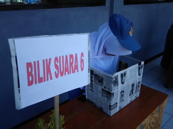Setelah puas mendengarkan Visi dan Misi dari masing-masing calon maka pemilihan pun mulai dilaksanakan, para siswa dari kelas X, XI dan XII berbondong-bondong menuju bilik suara yang telah di sediakan oleh panitia, pemandangan ini tak beda jauh dari pemilihan umum yang kerap di adakan di nusantara ini, baik untuk pilkada ataupun pilpres, hal ini sangat baik sekali sebagai latihan mereka untuk dapat belajar menggunakan hak pilihnya kelak dan “NO GOLPUT”.