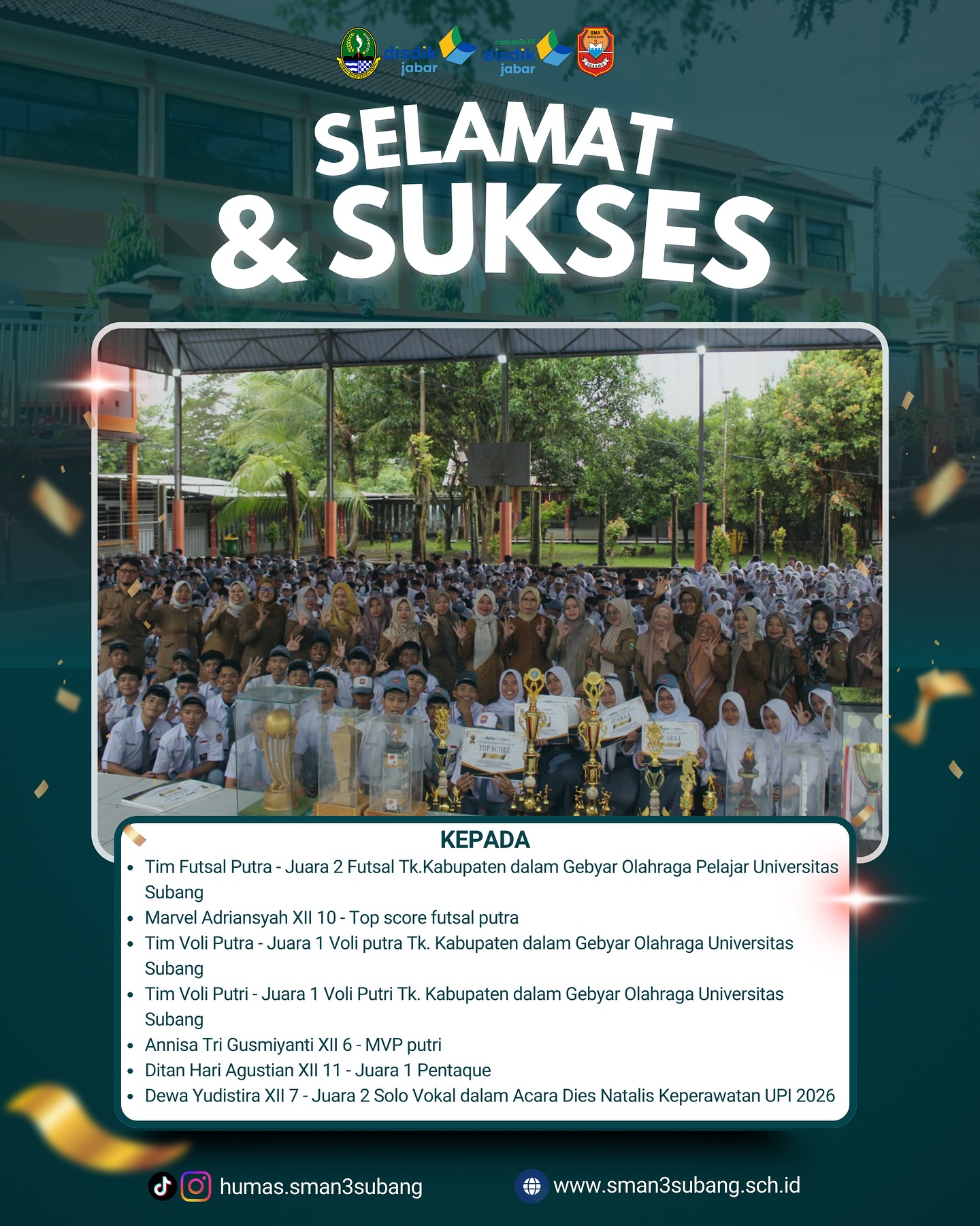 Dalam rangka memberikan pemahaman yang lebih komprehensif kepada orang tua mengenai pelaksanaan Tes Kemampuan Akademik (TKA) sebagai salah satu bentuk asesmen sumatif bagi peserta didik kelas XII, SMAN 3 Subang menyelenggarakan kegiatan Sosialisasi TKA pada Jumat, 10 Oktober 2025 bertempat di Aula SMAN 3 Subang.